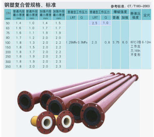 以鋼管為中間層,內(nèi)外層為聚乙(丙)烯塑料,采用熱溶膠,通過擠出成型方法復(fù)合成一體的復(fù)合管材